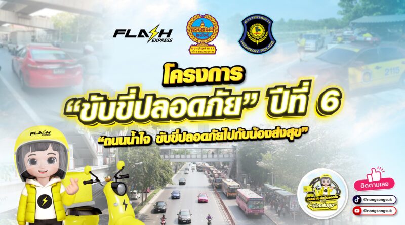 บริษัท แฟลช เอ็กซ์เพรส จำกัด ผู้นำด้านธุรกิจโลจิสติกส์ครบวงจรในไทยและเอเชียตะวันออกเฉียงใต้ ร่วมมือกับ กองบัญชาการตำรวจนครบาล (บช.น.) และ กองบังคับการตำรวจทางหลวง (บก.ทล.) เดินหน้าโครงการ “ขับขี่ปลอดภัย” สู่ปีที่ 6 ภายใต้แนวคิดใหม่ “ถนนน้ำใจ ขับขี่ปลอดภัยไปกับน้องส่งสุข” โดยปีนี้ได้ยกระดับการสื่อสารผ่าน วิดีโอคอนเทนต์ออนไลน์ เพื่อเข้าถึงคนรุ่นใหม่ พร้อมปลูกฝังวินัยจราจรในระยะยาว