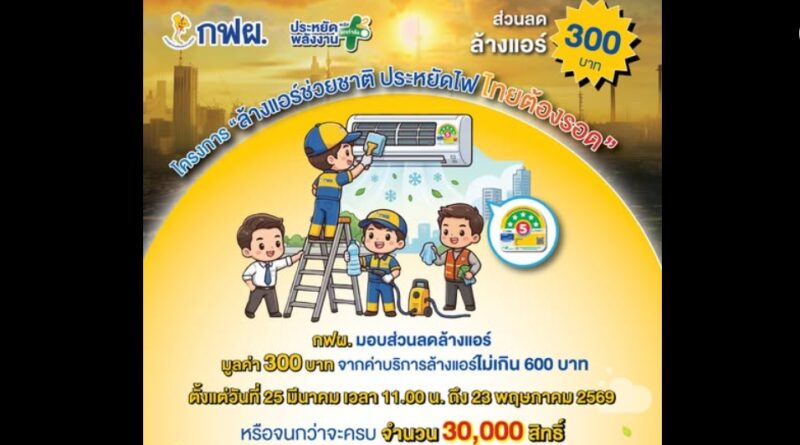 ข่าวจริง “กฟผ. จัดโครงการล้างแอร์ช่วยชาติ ช่วยออกค่าล้างแอร์ให้ 300 บาท”